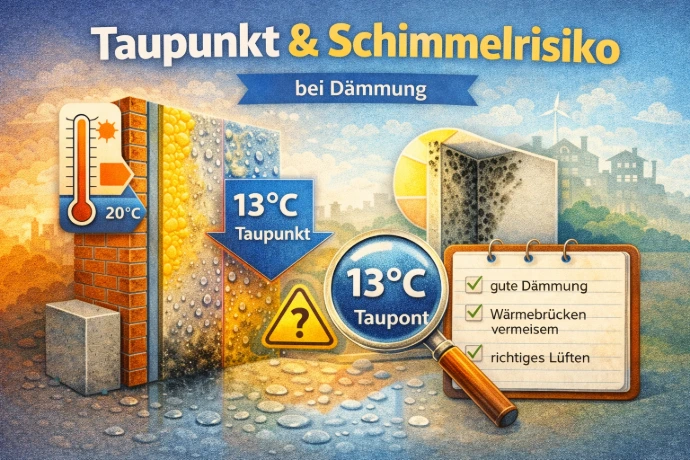 Der Taupunkt spielt eine wichtige Rolle bei der Planung von Dämmmaßnahmen. Wird eine Wand oder ein Bauteil falsch gedämmt, kann sich Feuchtigkeit innerhalb der Konstruktion oder auf der Oberfläche bilden. Dies kann langfristig zu Schimmelbildung und Bauschäden führen.