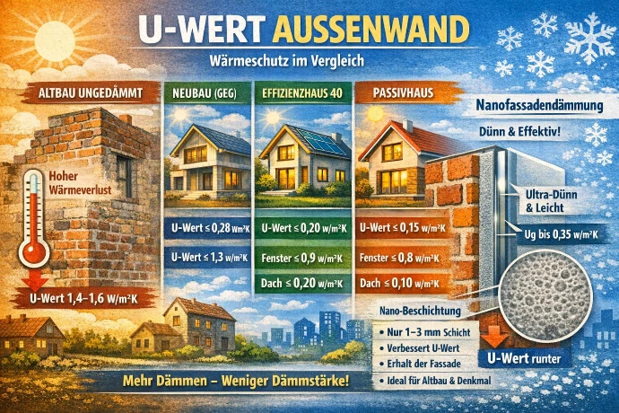 🧱 U-Wert Außenwand: Neubau, Altbau und die Rolle der Nanofassadendämmung